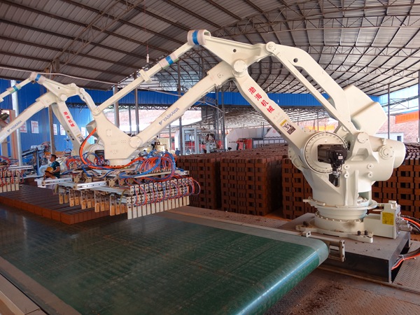 渤海機械公司的工業(yè)智能機器人自動切碼翻系統(tǒng)具有伺服電機驅動,自動化程度高,碼坯工藝簡潔,運行平穩(wěn)可靠、能耗低,節(jié)省空間,現(xiàn)場適應性強,可抓多種磚型。