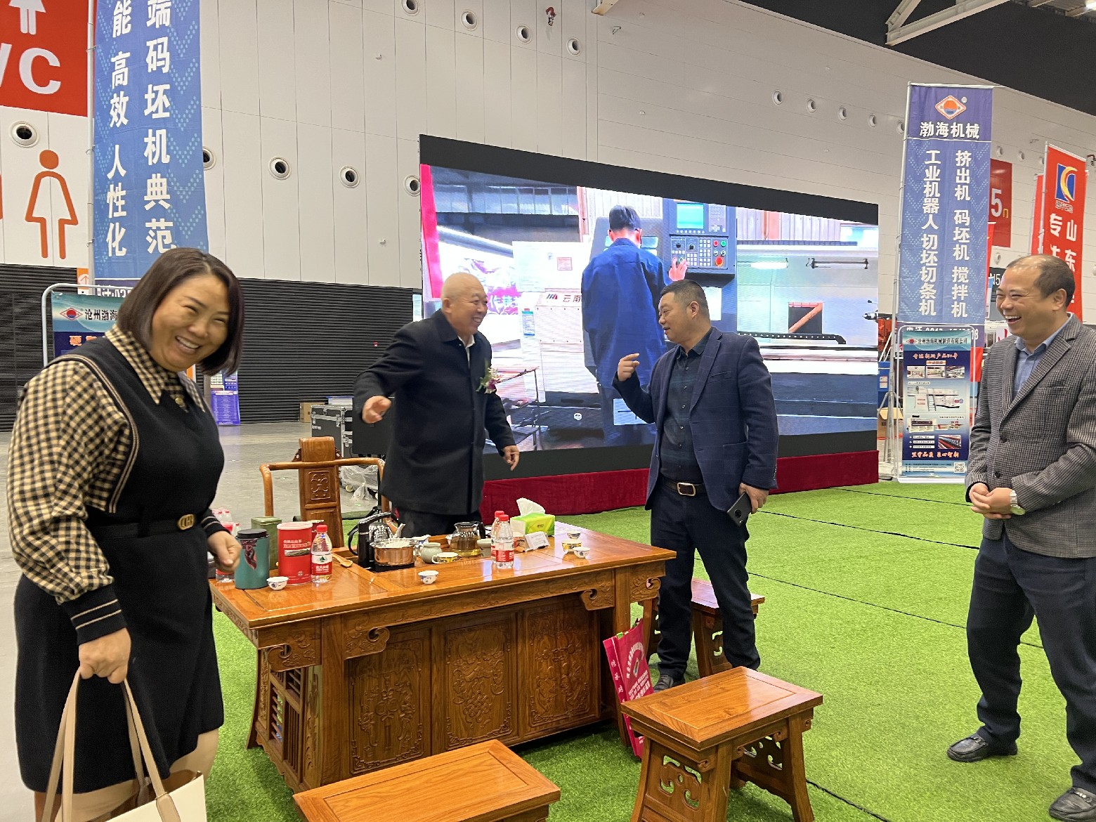 行業(yè)領導來到渤海機械的展廳,和董事長張加祥合影并進行親切交談,對我公司的一直以來的工作予以肯定,希望渤海機械作為磚瓦裝備生產制造的資深企業(yè),再接再厲,繼續(xù)為行業(yè)的發(fā)展做出突出的貢獻。